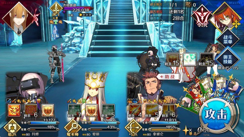 打完这一关后,我还是尽量寻找了无需使用令咒也能顺利通关的方案。确保在拿破仑死前能击杀齐格鲁德即可。再次对战齐格鲁德,带上南丁格尔是为了防止意外,我们进度来到5/5,尤其是锁助战机制带来更大挑战。