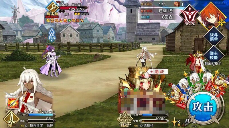 接下来就是常规阵容了,且为活动从者,如此顺序可避免失败。因此在战斗中稍显吃力。依旧要先击败兽尼,