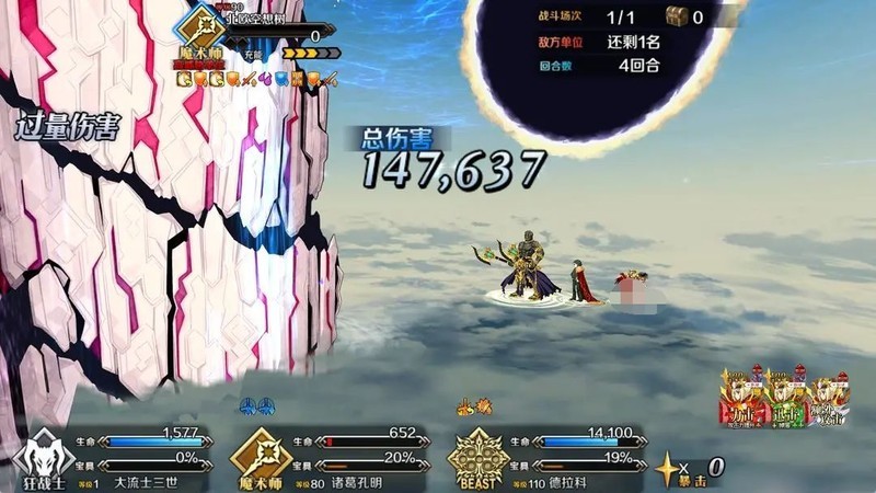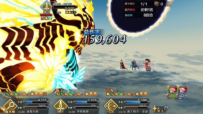 齐格鲁德充满能量后释放宝具,带上三星二姐,单体攻击磨掉第一条血。